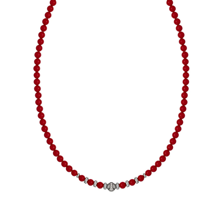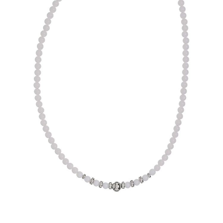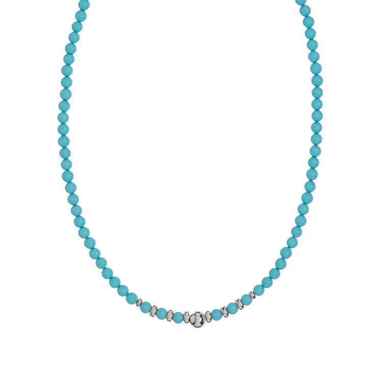 Κολιέ με πέτρες σε διαφορετικούς χρωματισμούς και κεντρική μπίλια, από ασήμι 925.