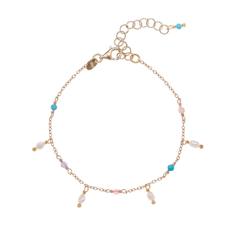 Βραχιόλι ημιάκαμπτο με πέρλες και χρωματιστές πέτρες, από ασήμι 925.