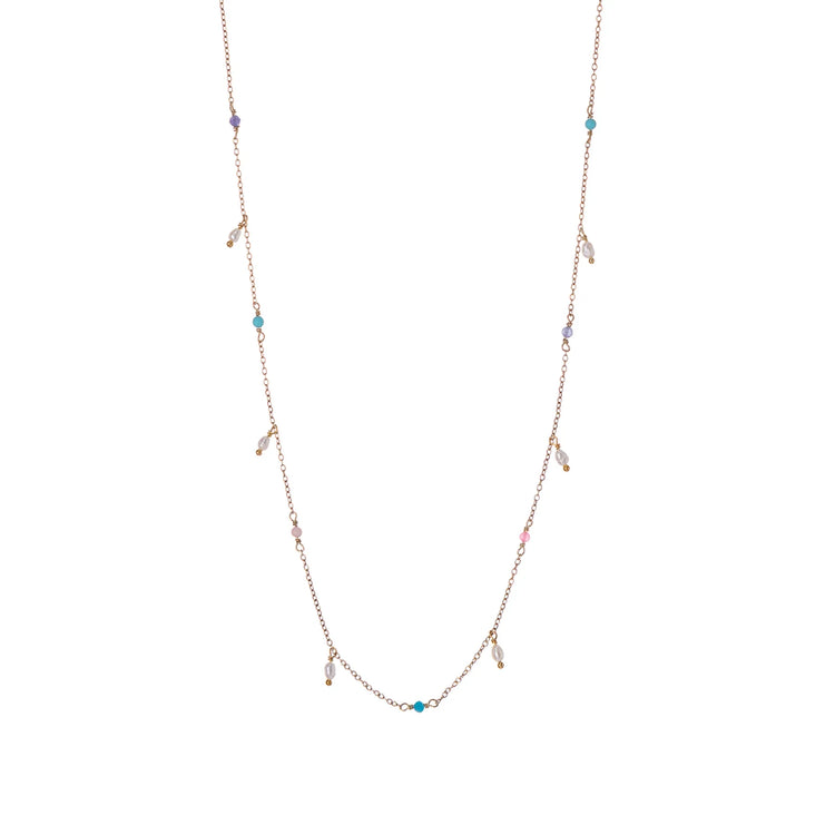 •Ζωντανά, πολύχρωμα και διασκεδαστικά κοσμήματα, στα οποία το καθαρό λευκό του μαργαριταριού ενισχύει το ροζ, το μπλε και το μωβ των πετρών.