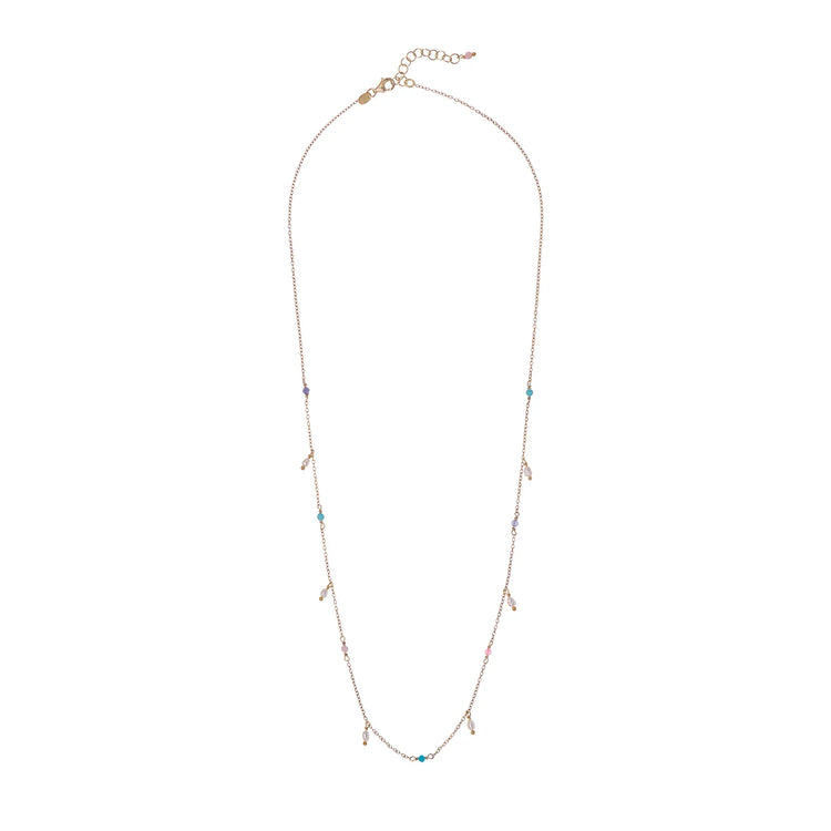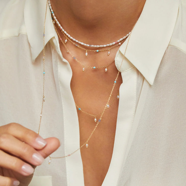 Κολιέ με μακριά αλυσίδα, με πέτρες και πέρλες, από ασήμι 925.
