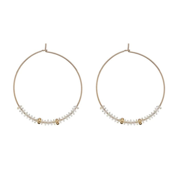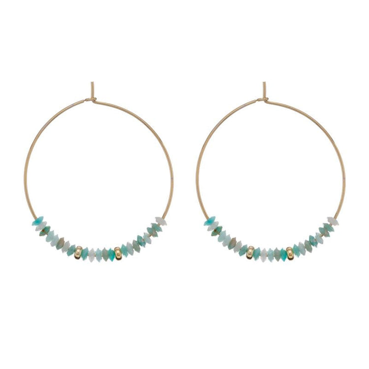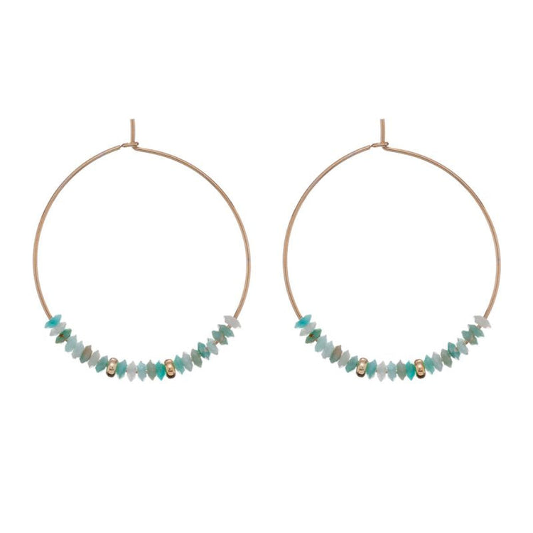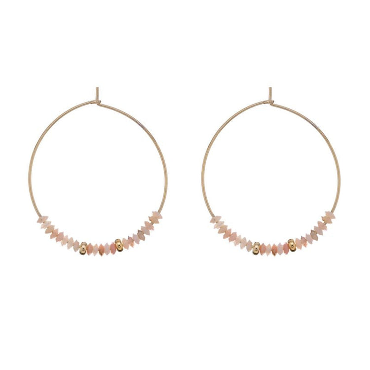 Ένα στυλάτο σετ σκουλαρίκια μεγάλοι κρίκοι με γραμμή ημιπολύτιμων λίθων σε παστέλ χρώμα και σφαιρικές ράβδους ανάμεσά τους, από την Alisia, κατασκευασμένο από ασήμι 925.