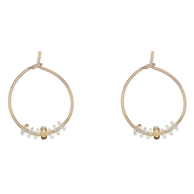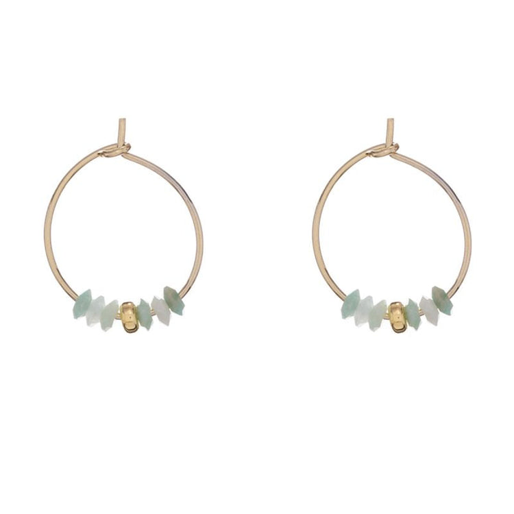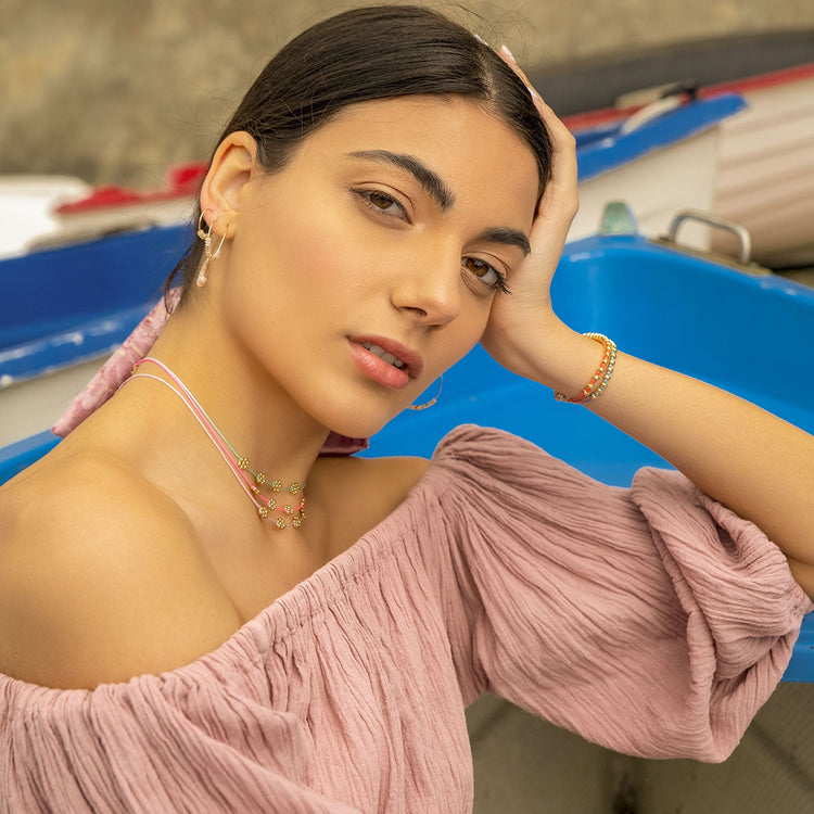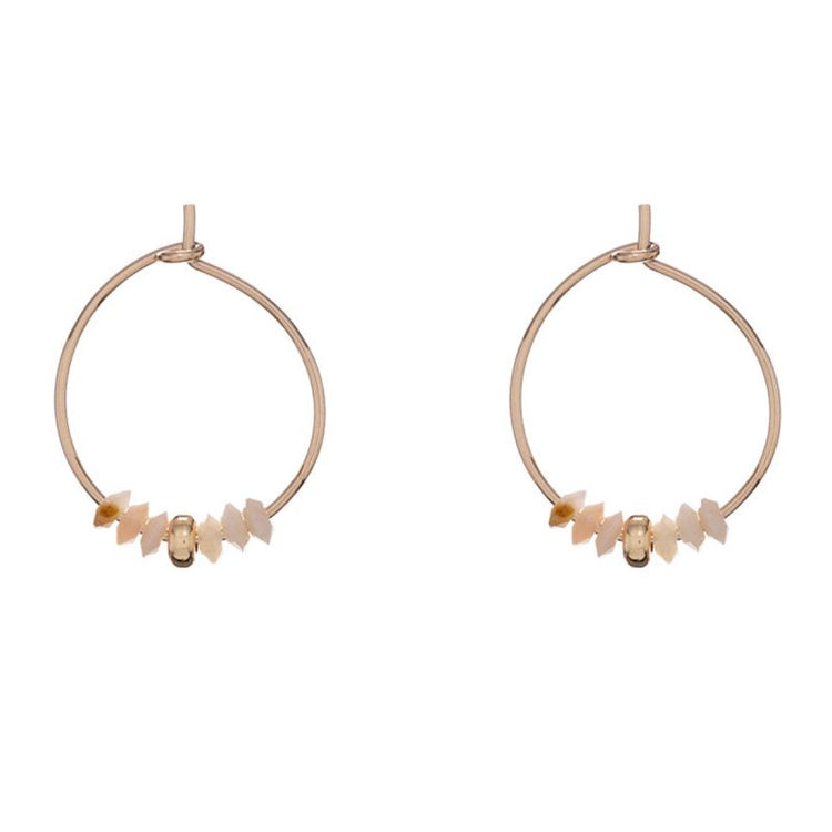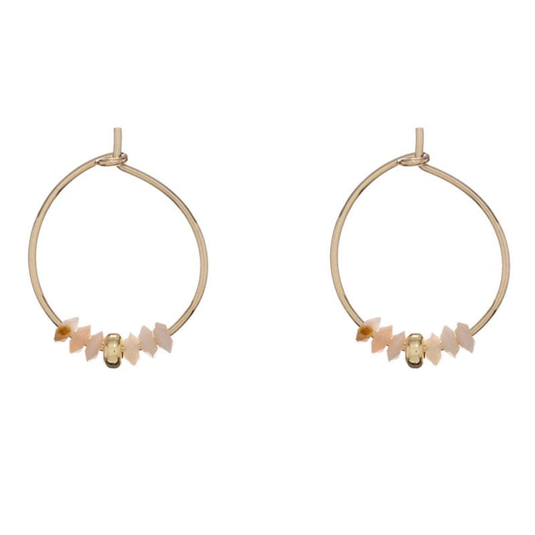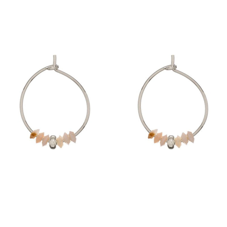 Ένα όμορφο σετ σκουλαρίκια κρίκοι με γραμμή ημιπολύτιμων λίθων σε παστέλ χρώμα και σφαιρικές ράβδους ανάμεσά τους, από την Alisia, κατασκευασμένο από ασήμι 925.