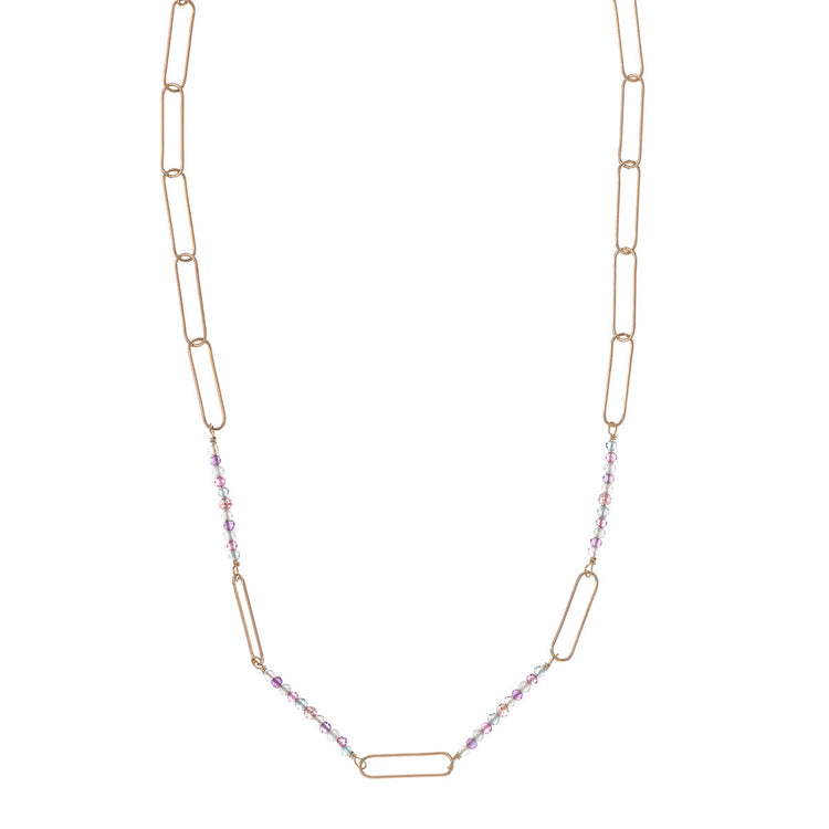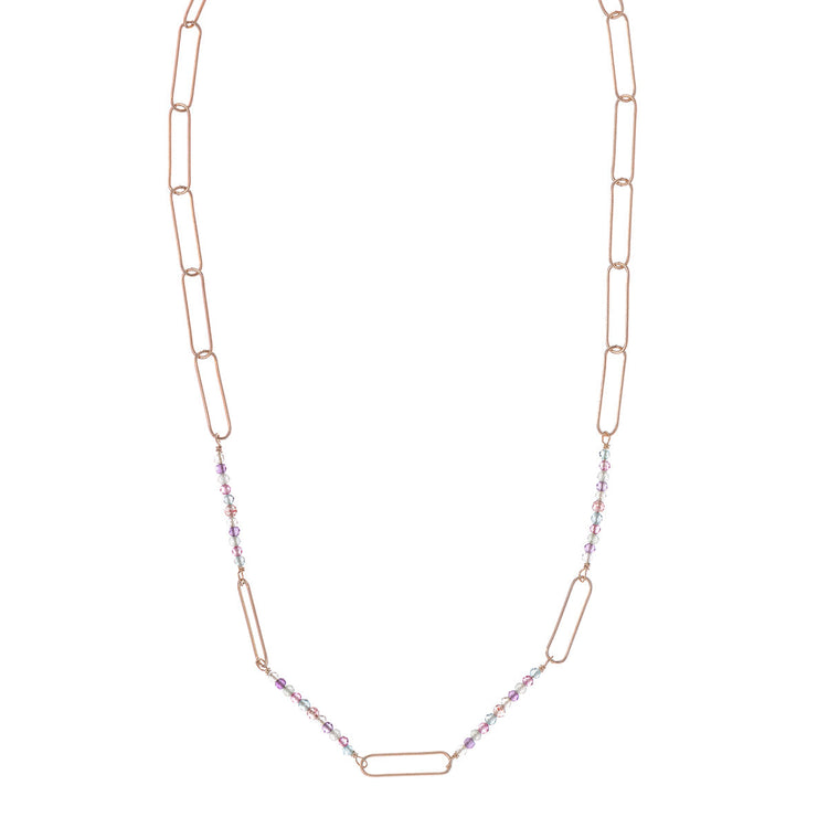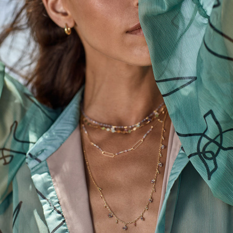 Ένα σαγηνευτικό γυναικείο κολιέ με μεγάλη αλυσίδα και γραμμές από ημιπολύτιμους λίθους σε διάφορους χρωματισμούς από την Alisia, κατασκευασμένο από ασήμι 925.