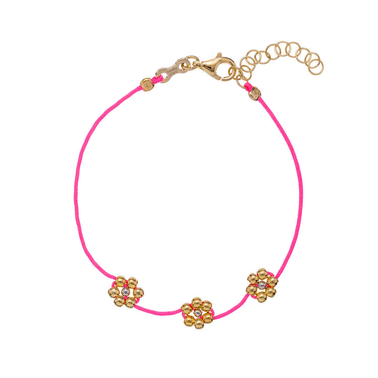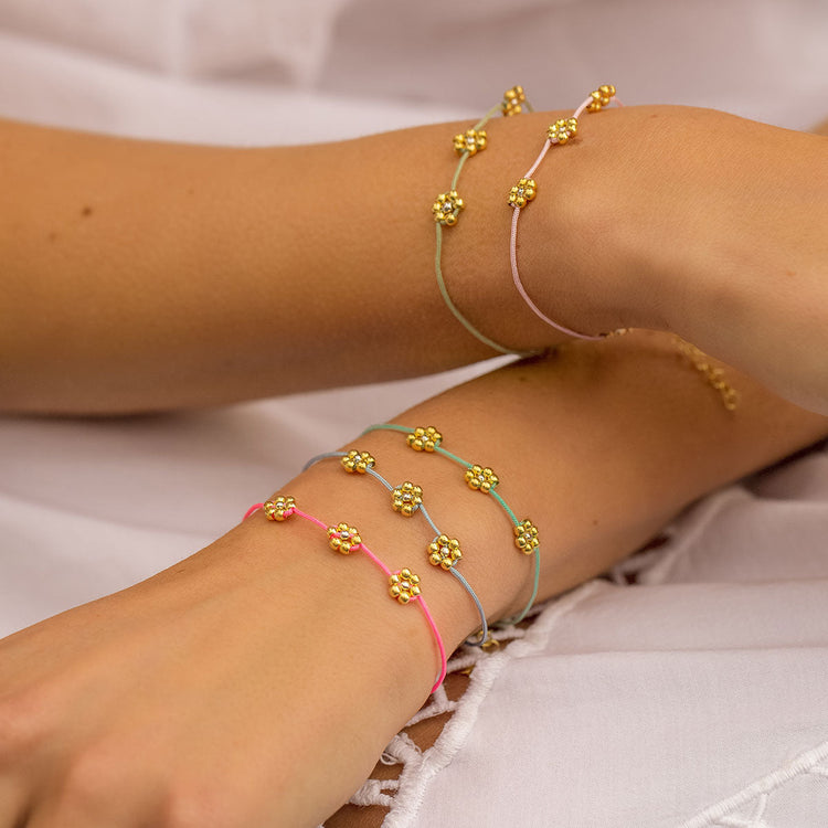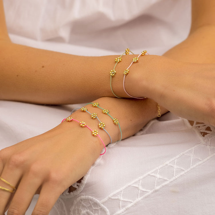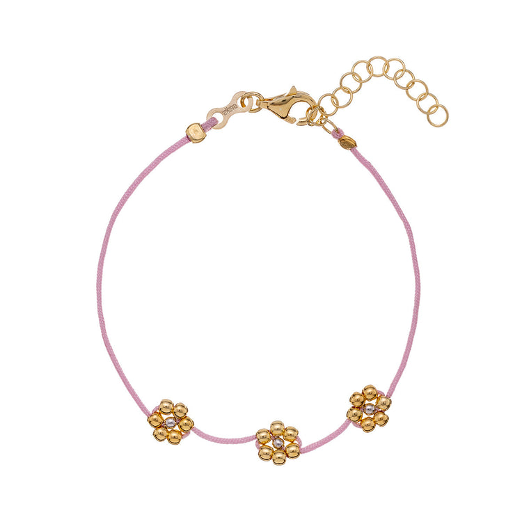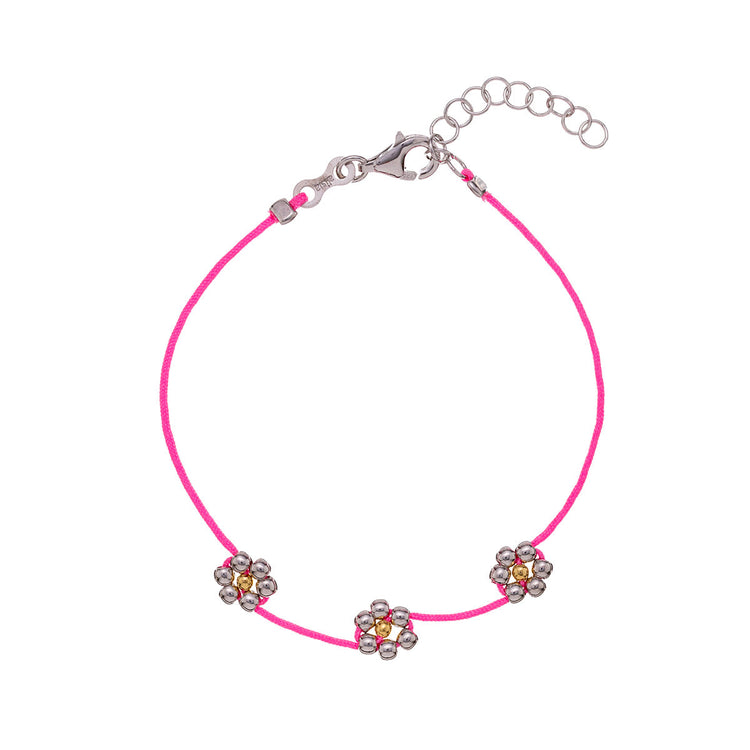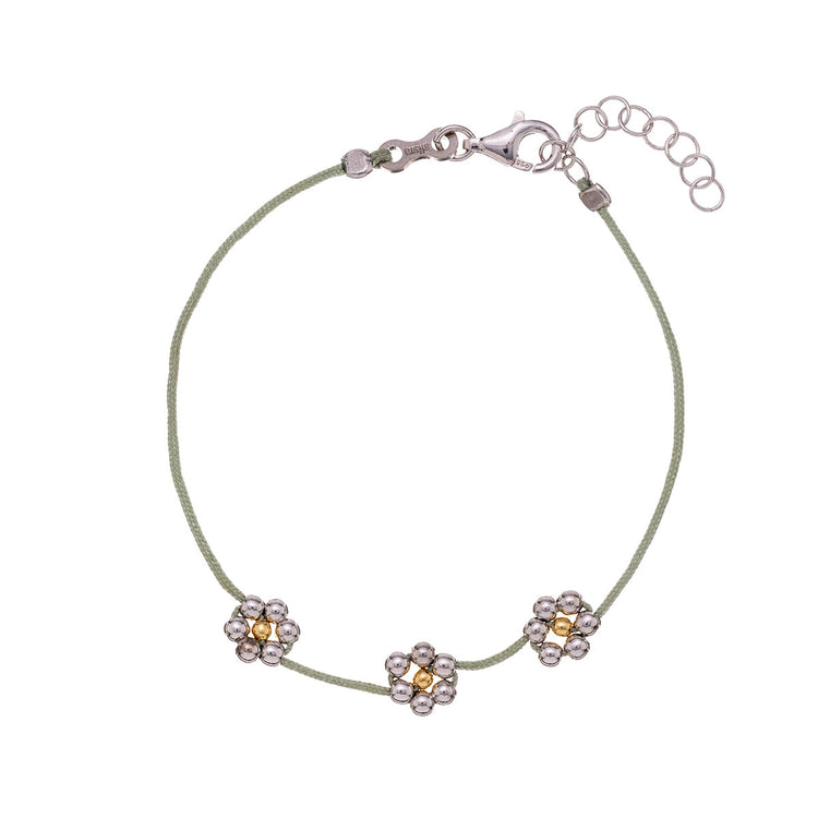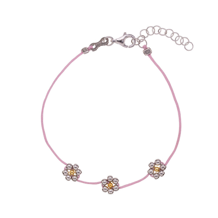Ένα ιδιαίτερο βραχιόλι από σχοινί με τρία μικρά λουλούδια, από την Alisia, κατασκευασμένο από ασήμι 925.