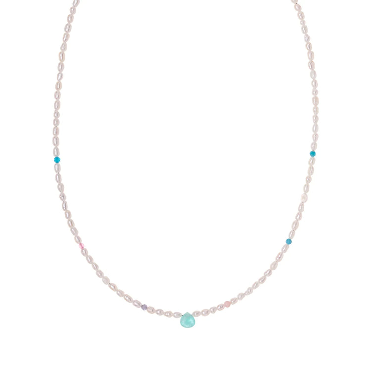 Κολιέ ημιάκαμπτο με πέτρες και πέρλες, από ασήμι 925.