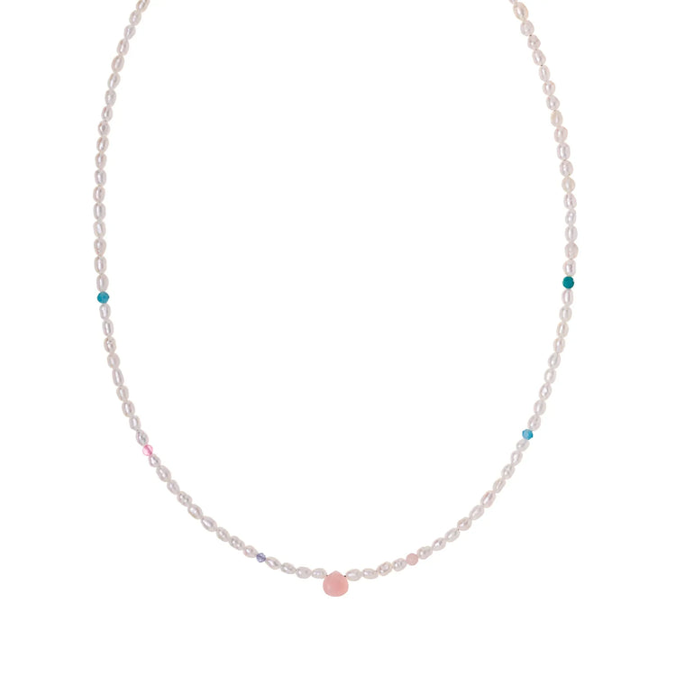 •Ζωντανά, πολύχρωμα και διασκεδαστικά κοσμήματα, στα οποία το καθαρό λευκό του μαργαριταριού ενισχύει το ροζ, το μπλε και το μωβ των πετρών.