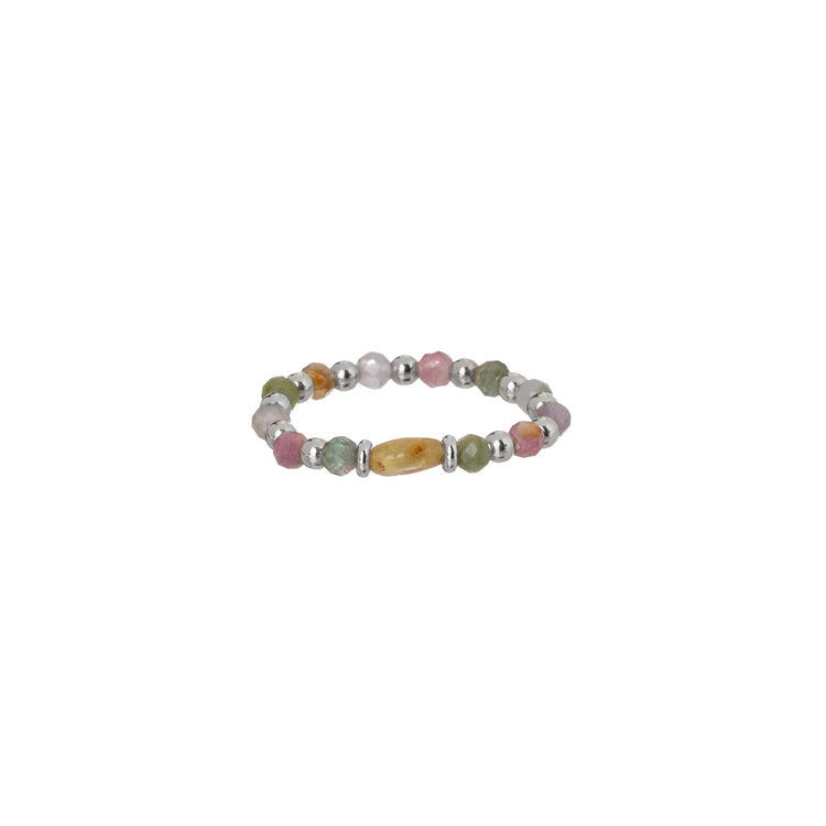 Δαχτυλίδι  με τουρμαλίνες και στοιχεία, από ασήμι 925.