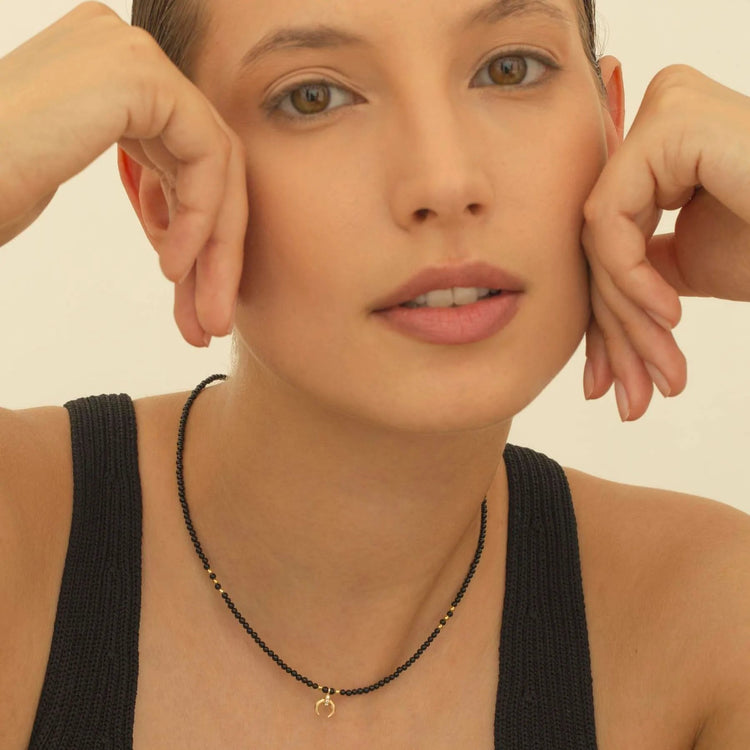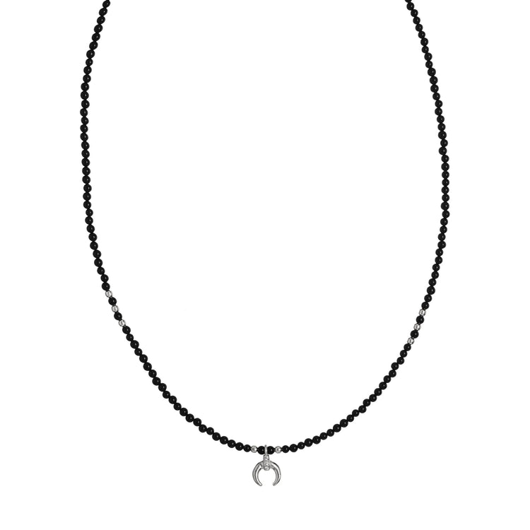Κολιέ με λεπτή αλυσίδα και μαύρες πέτρες, από ασήμι 925.
