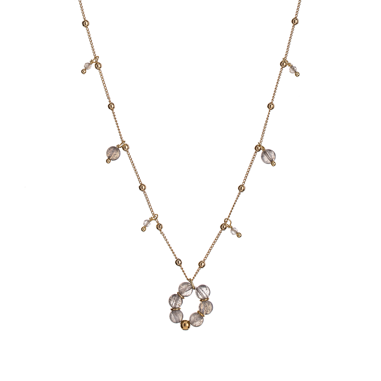 Ένα ελκυστικό γυναικείο κολιέ με κρεμαστές πέτρες και μικρές στρογγυλές ράβδους, από την Alisia, κατασκευασμένο από ασήμι 925.