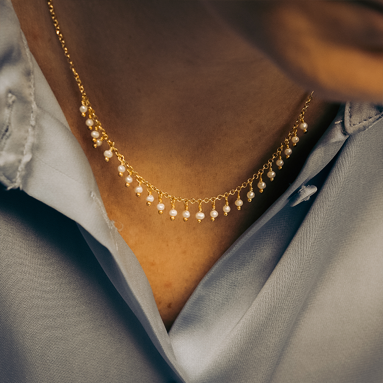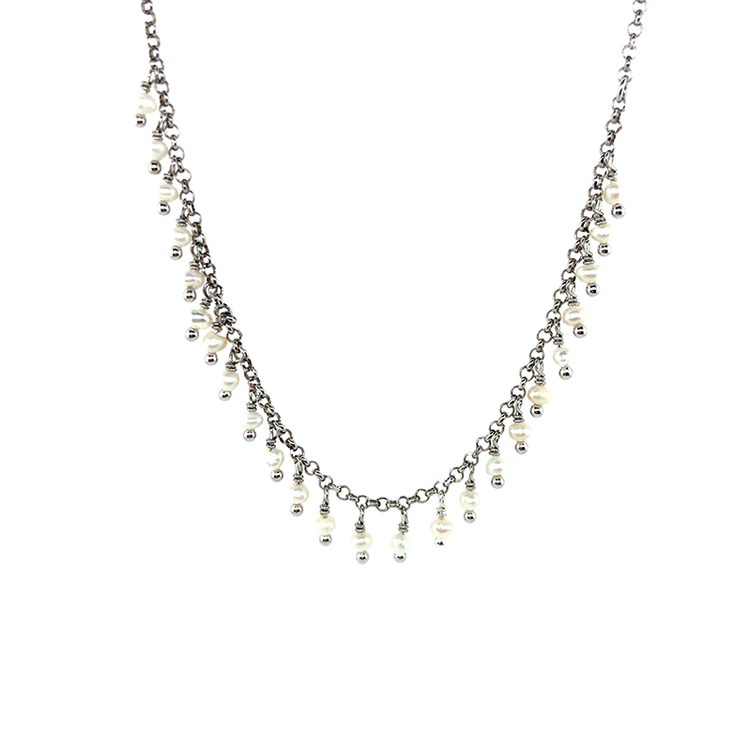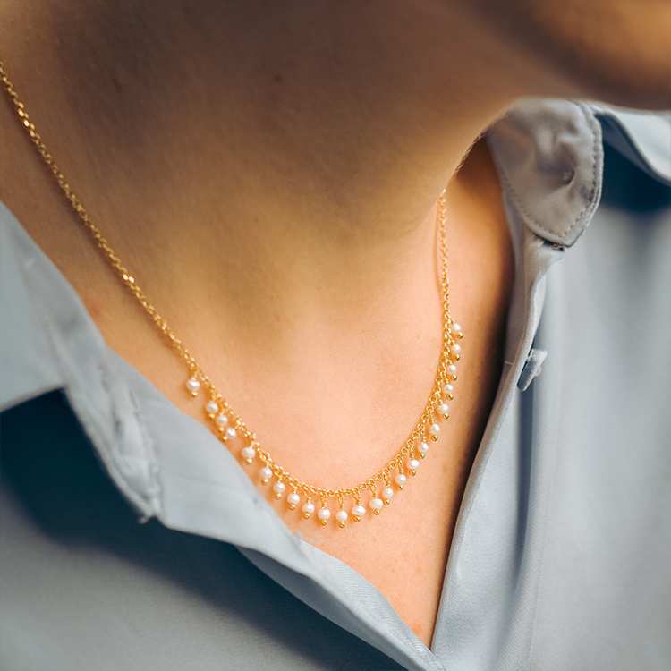 Ένα εντυπωσιακό γυναικείο κολιέ με κρεμαστές πέρλες από την Alisia, κατασκευασμένο από ασήμι 925.