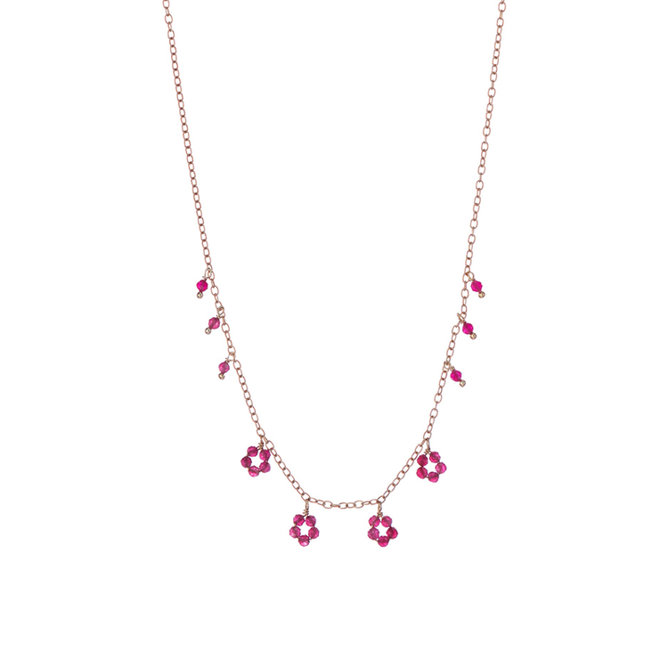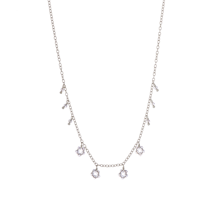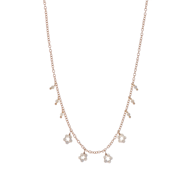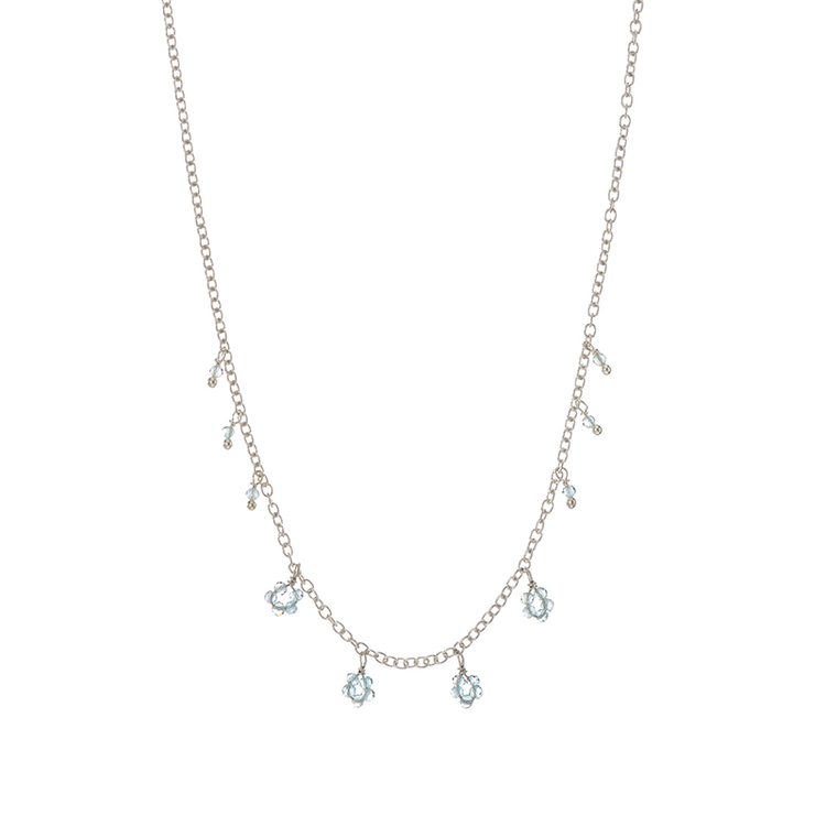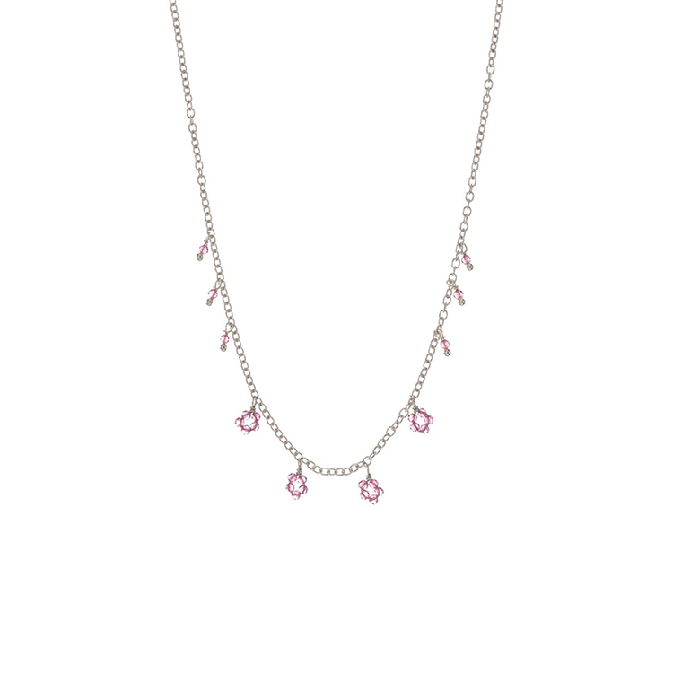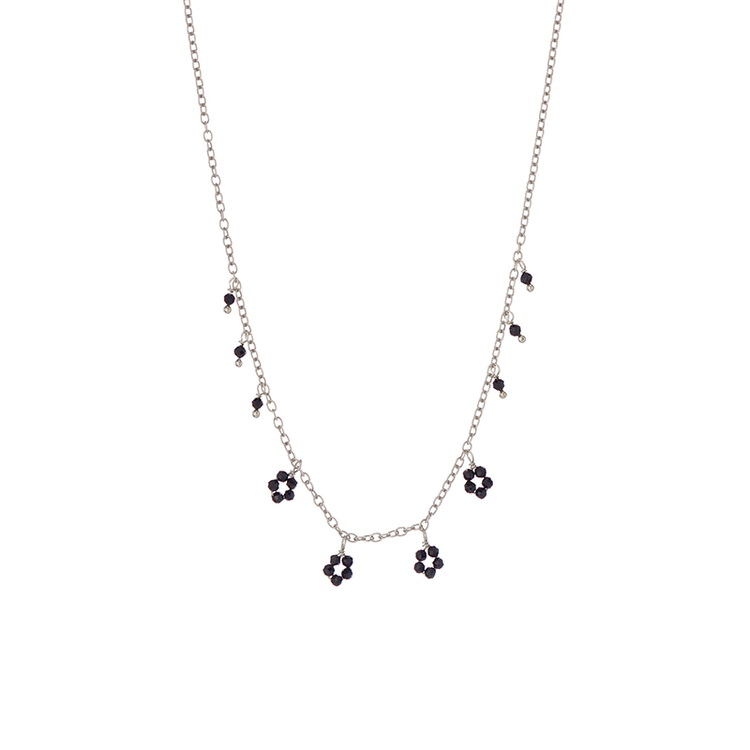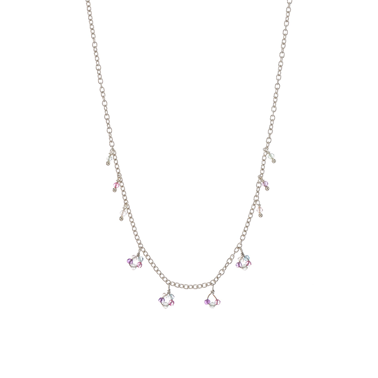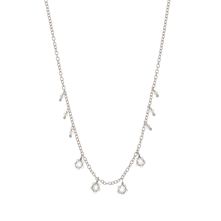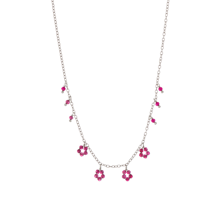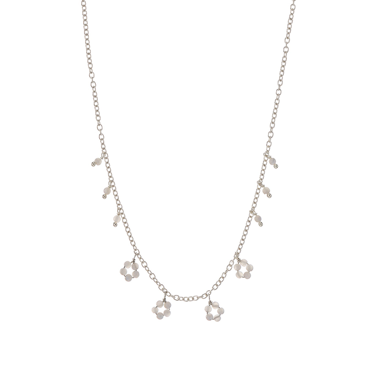 Ένα μοδάτο γυναικείο κολιέ με μικρά λουλούδια από ημιπολύτιμες πέτρες, από την Alisia, κατασκευασμένο από ασήμι 925.