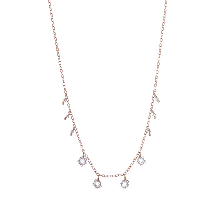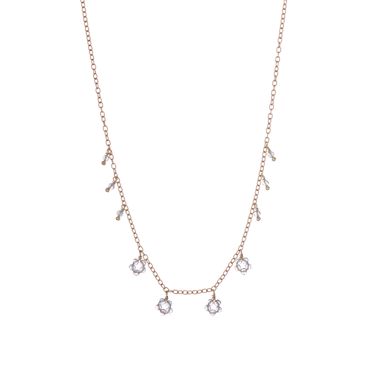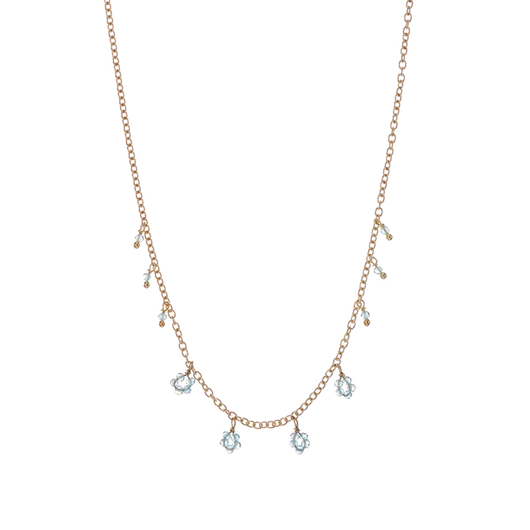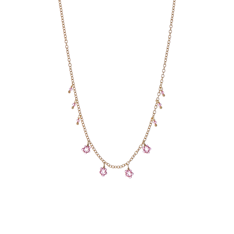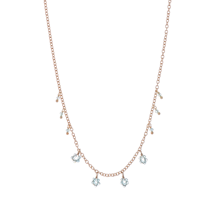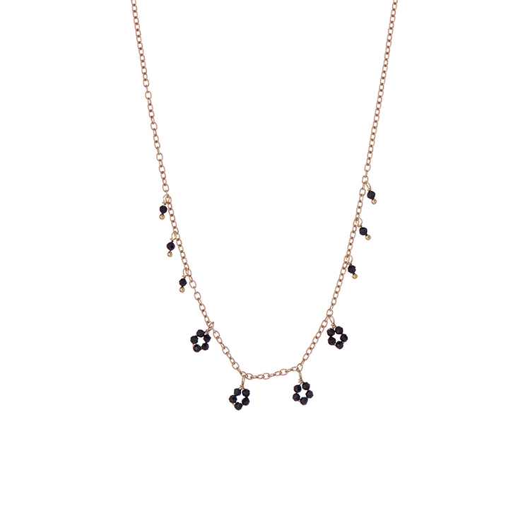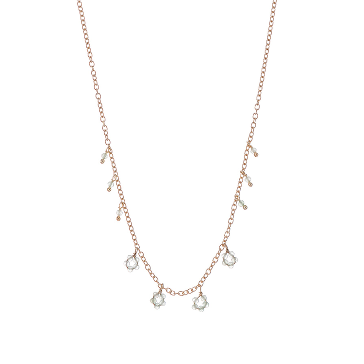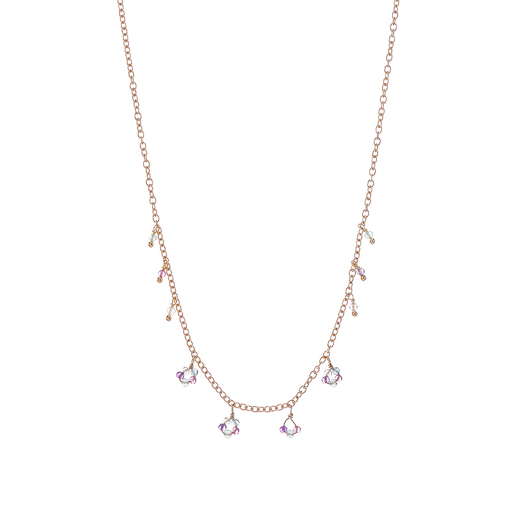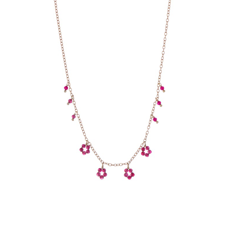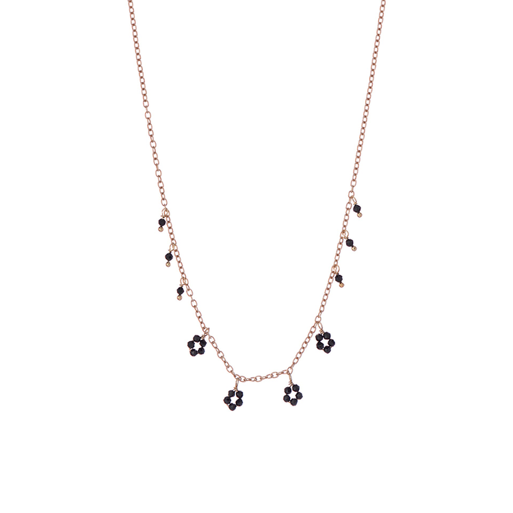 Ένα μοδάτο γυναικείο κολιέ με μικρά λουλούδια από ημιπολύτιμες πέτρες, από την Alisia, κατασκευασμένο από ασήμι 925.
