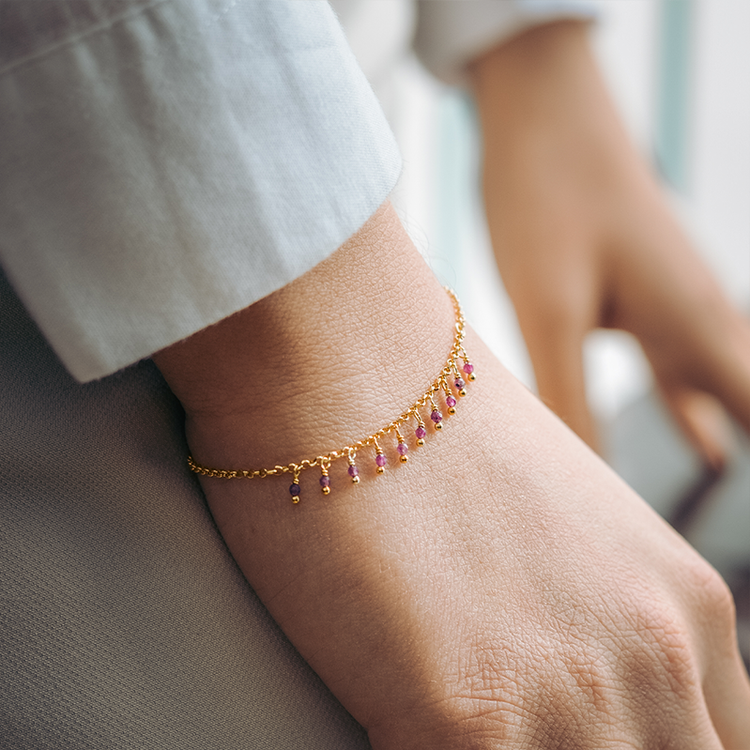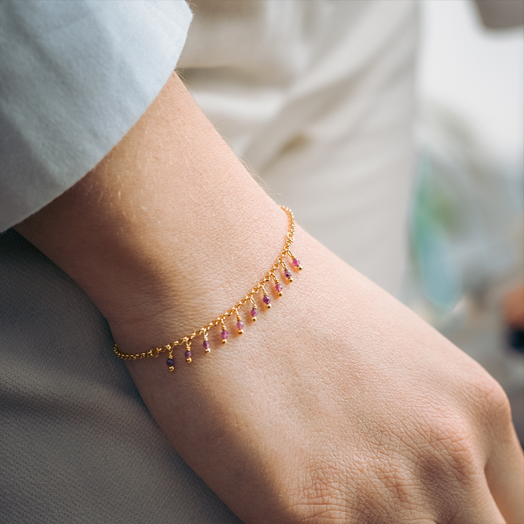 Ένα ξεχωριστό βραχιόλι με κρεμαστά ρουμπίνια, από την Alisia, κατασκευασμένο από ασήμι 925.