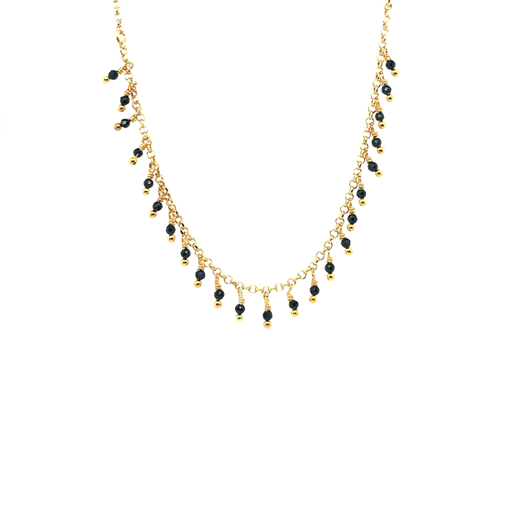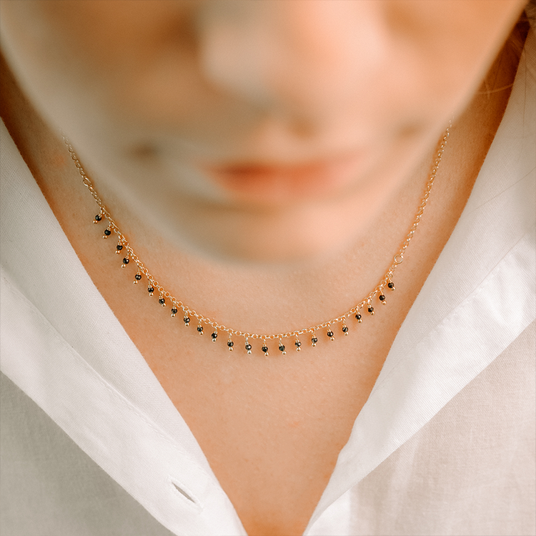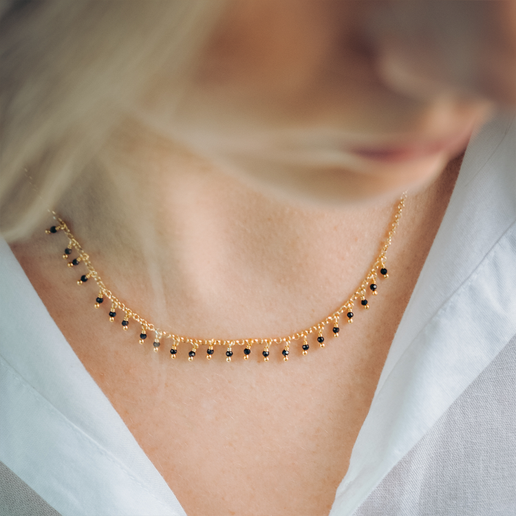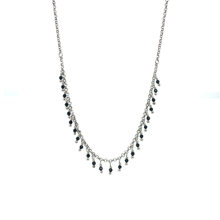 Ένα εκλεπτυσμένο γυναικείο κολιέ με μικρές μαύρες πέτρες, από την Alisia, κατασκευασμένο από ασήμι 925.