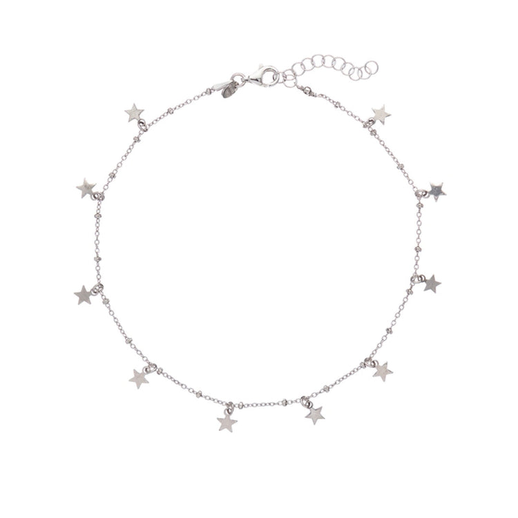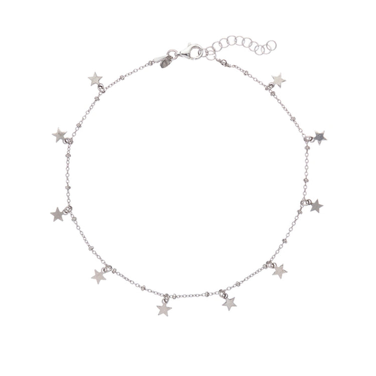 Μία άνετη αλυσίδα ποδιού με αστέρια μενταγιόν, από την Alisia, κατασκευασμένη από ασήμι 925.
