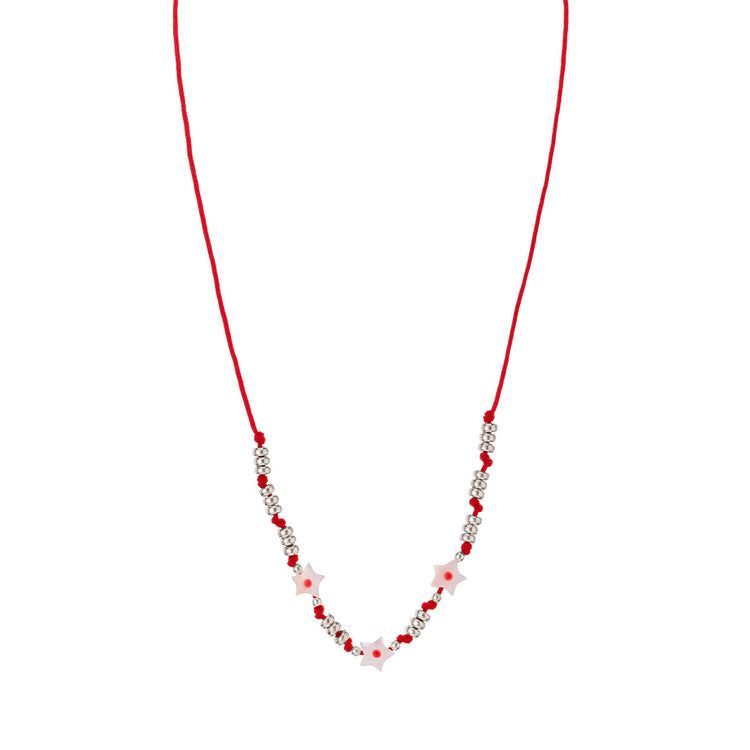 Ένα εντυπωσιακό γυναικείο κολιέ με σχοινί, αστέρι μαργαριτάρι και μπάλες, από την Alisia, κατασκευασμένο από ασήμι 925.
