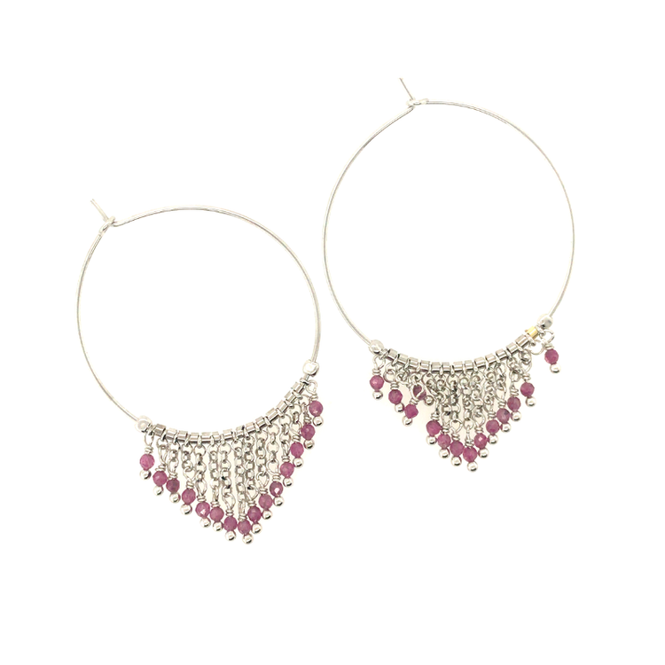 Ένα εντυπωσιακό σετ σκουλαρίκια με κρεμαστές αλυσίδες και ημιπολύτιμους λίθους που ο σχηματισμός τους θυμίζει τρίγωνο, από την Alisia, κατασκευασμένο από ασήμι 925.
